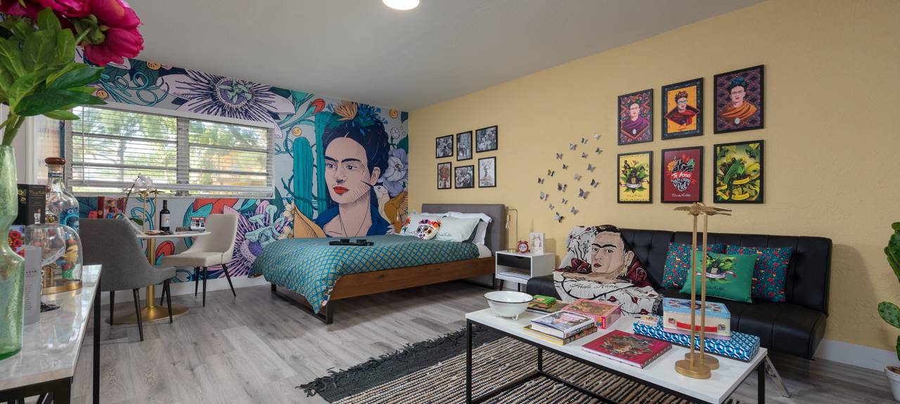 Throughout her lifetime, Frida Kahlo lived in various short-term rentals while traveling abroad. She dressed with a powerful and unique style as a freelance ambassador of Mexico throughout her life. Because Frida Kahlo was named Ambassador Brand of Mexico in 2020, carrying on this ambassadorship was the primary purpose of creating Casa Kahlo. All of our guests will contribute to keeping Frida’s legacy alive. Casa Kahlo offers a truly unique stay that allows the guest to experience Deerfield Beach while living in Frida Kahlo’s creative universe.